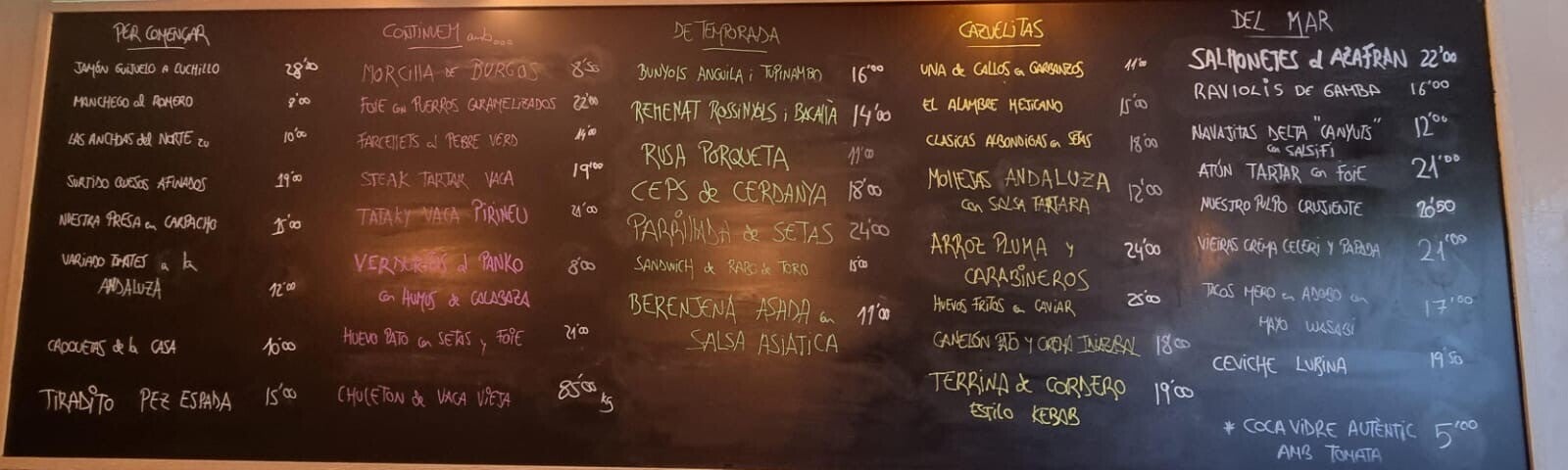 This tavern-style restaurant is a hidden gem that seems to have been around for years on Rambla de Poblenou, though many of us only recently discovered it. It’s definitely one of those places not to be missed! Specializing in wines, it’s the perfect spot for wine lovers as well as those who enjoy good food. Their menu focuses on shareable dishes, with both hot and cold options, all made with fresh, seasonal ingredients from the market, ensuring that the menu changes with the seasons and adds a unique touch to each visit. The atmosphere is relaxed and warm, and as one of the walls says: “Good cooking takes time, and here everything is made to order.”