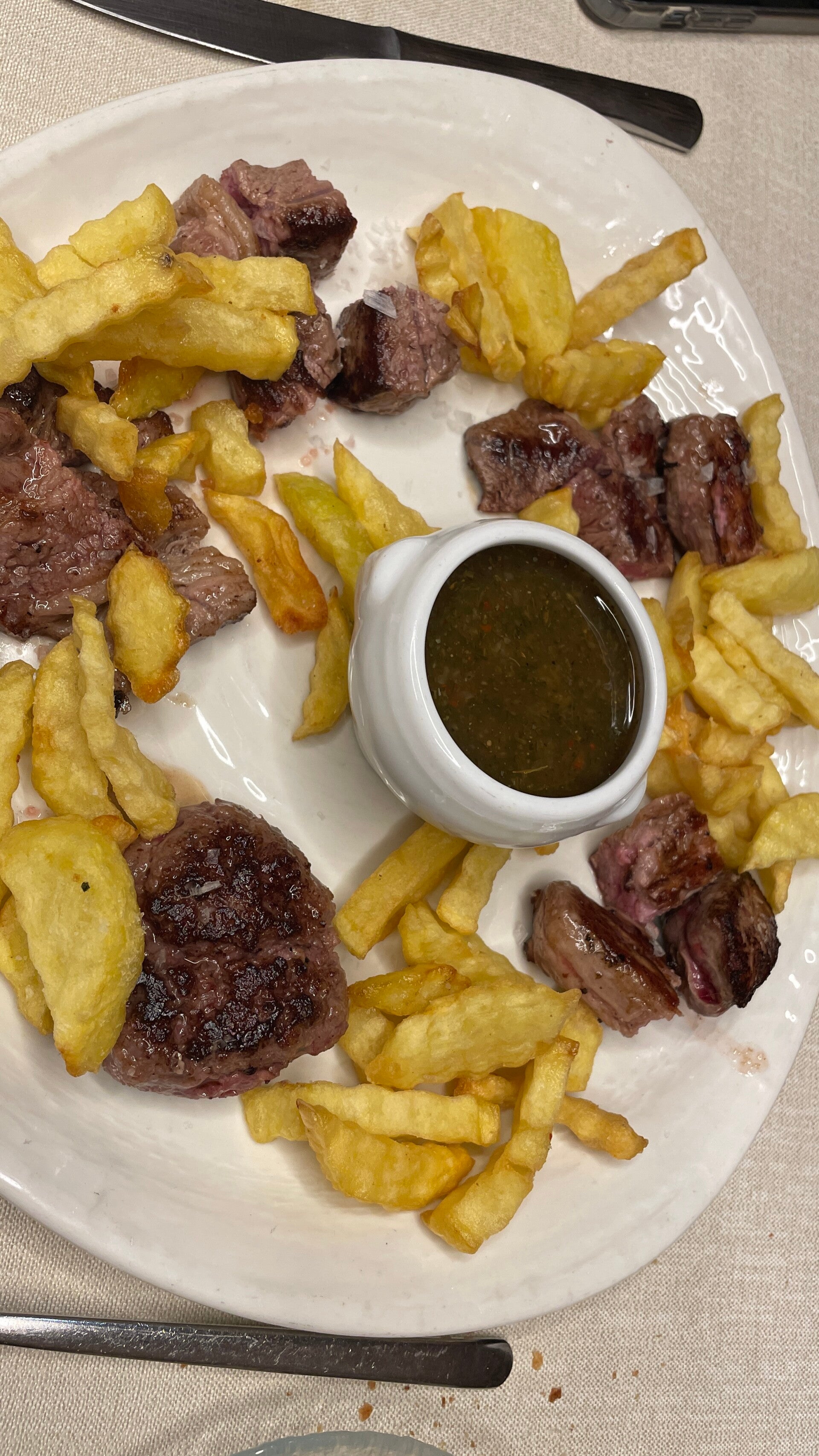 Located in the heart of Pamplona, Arostegui is considered by many to be one of the city’s standout restaurants. The restaurant occupies a historic multi-story building and features a very charming outdoor terrace. While the terrace is visually appealing, its usability may depend somewhat on Pamplona’s weather. During our visit we were fortunate to be seated at a table near the kitchen, slightly separated from the rest of the dining room on that floor, which provided a particularly comfortable and intimate setting. That said, some of the tables are placed quite close together, which could feel a bit tight considering the constant movement of staff carrying dishes and guests passing by. On the upper floor there are also private dining rooms available, which can be a good option for meetings or more private gatherings. The food stands out for the quality of the ingredients and the generally generous portions. The cuisine is traditional and homemade in style, with a conventional menu that is well executed, as well as a more casual selection of small plates designed especially for the terrace. In addition, they offer a number of off-menu dishes, which is usually a good sign and suggests the use of fresh, seasonal ingredients. The service deserves special mention: friendly, professional, and attentive throughout our visit. At one point we did overhear a reprimand directed at some members of the staff, which perhaps would have been better handled away from the dining room. Nevertheless, aside from that moment, the team treated us extremely well and made us feel very well looked after during the entire experience.